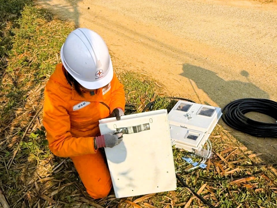 Nữ nhân viên Công ty Điện lực Sơn La lắp đặt hòm công tơ phục vụ công tác phát triển mới khách hàng